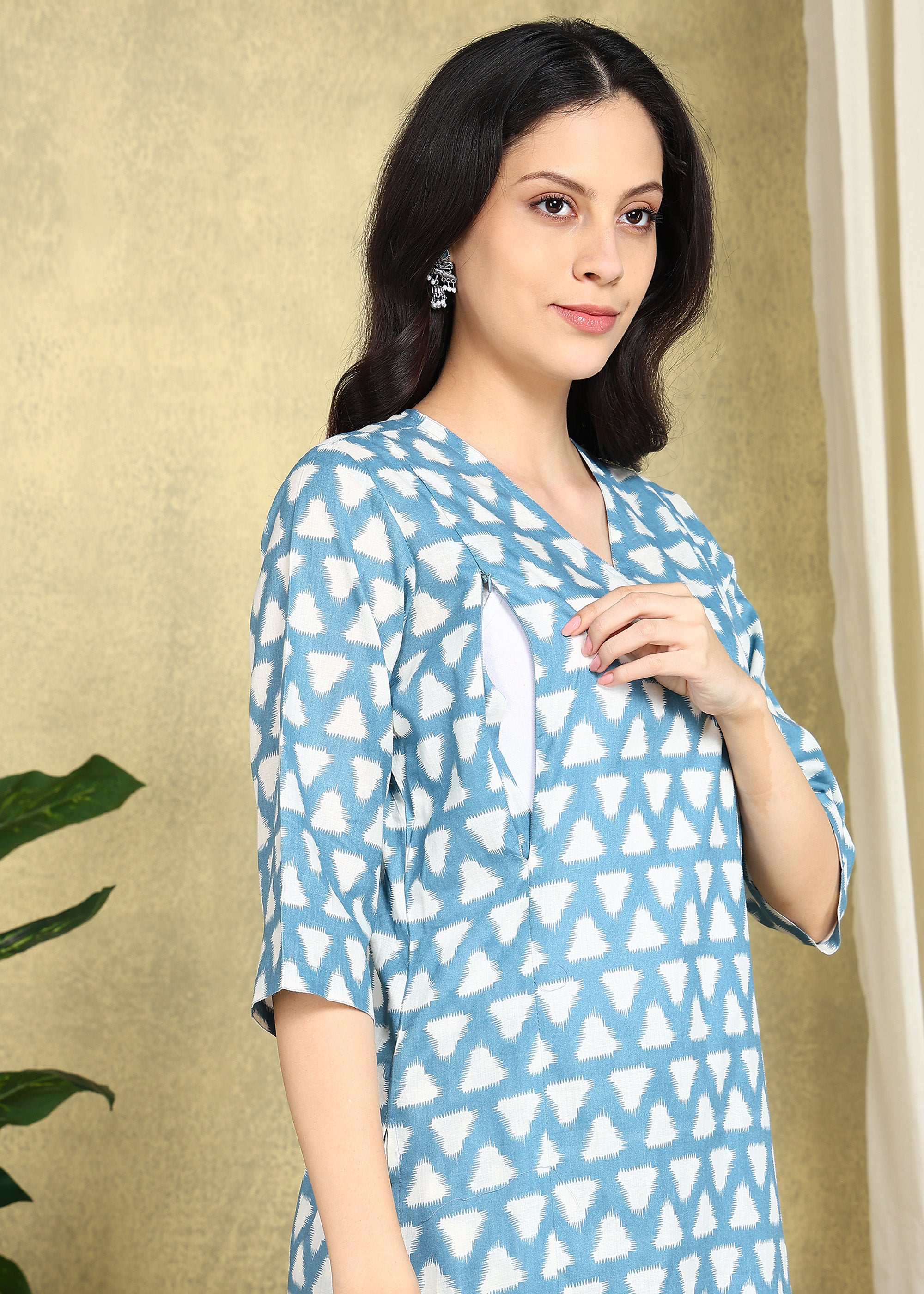 Blue Breeze Ikkat Straight Feeding Kurta Set
