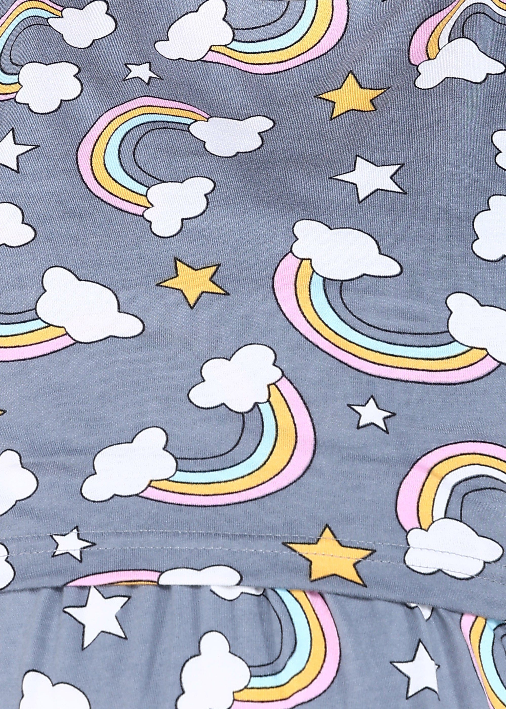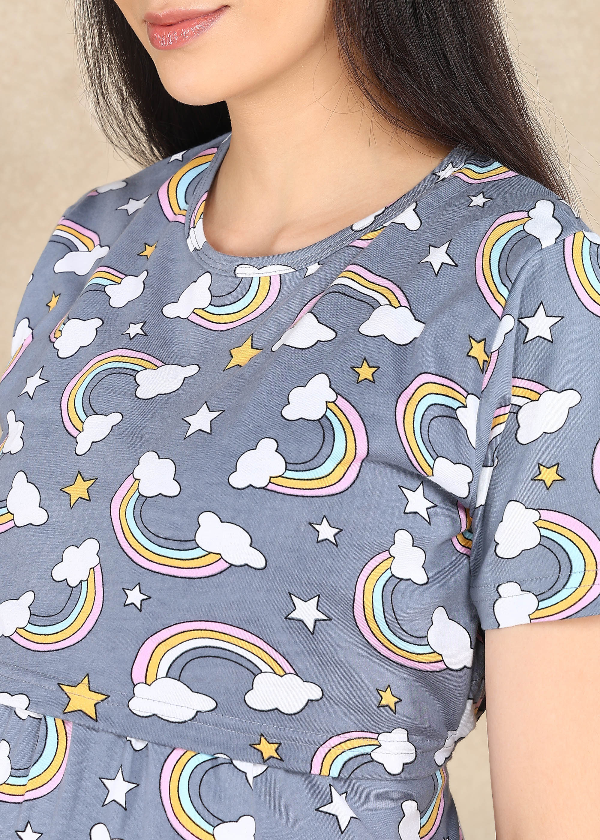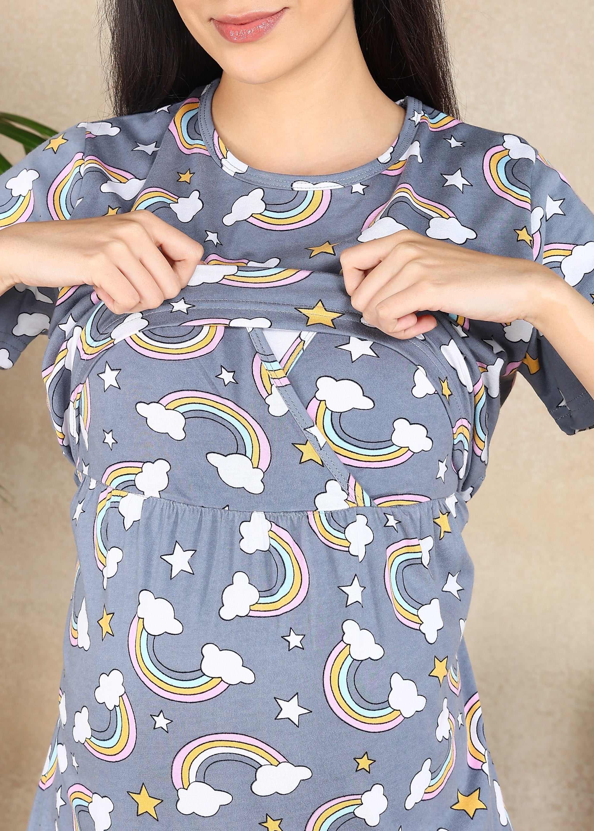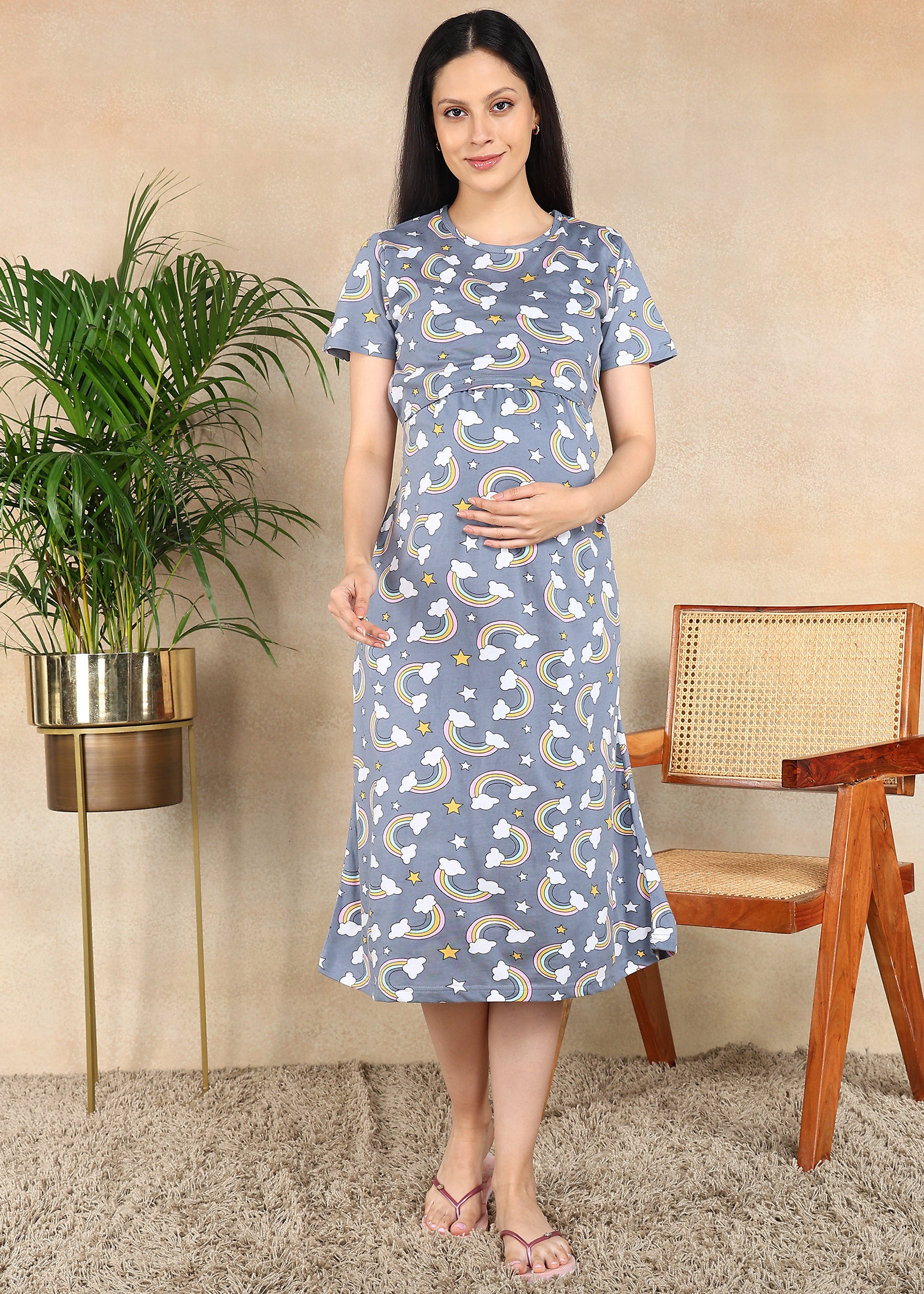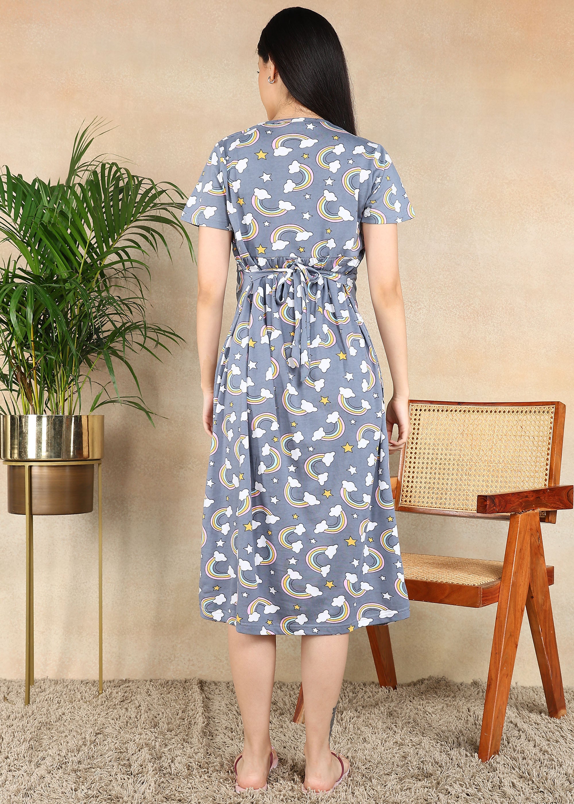 Grey Rainbow Cross-neck Maternity Loungewear Dress