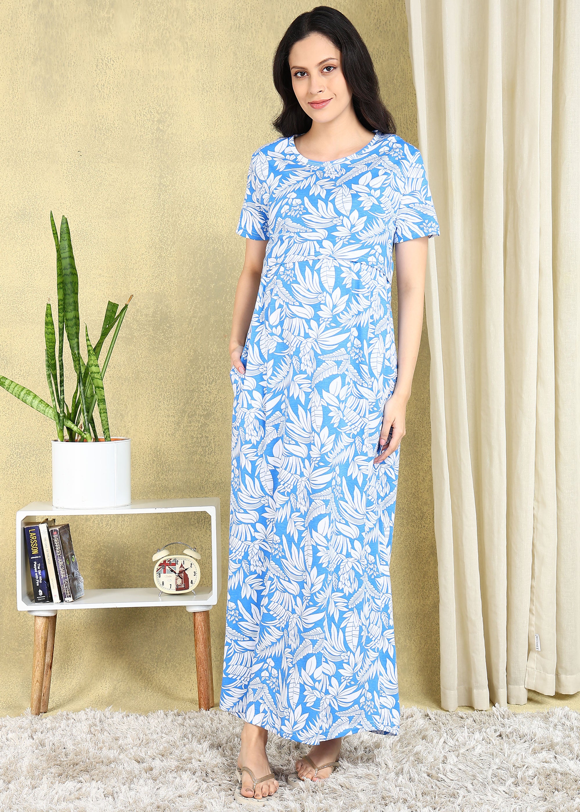 Leafy Affair Blue Cross-neck Maternity Loungewear Maxi Dress