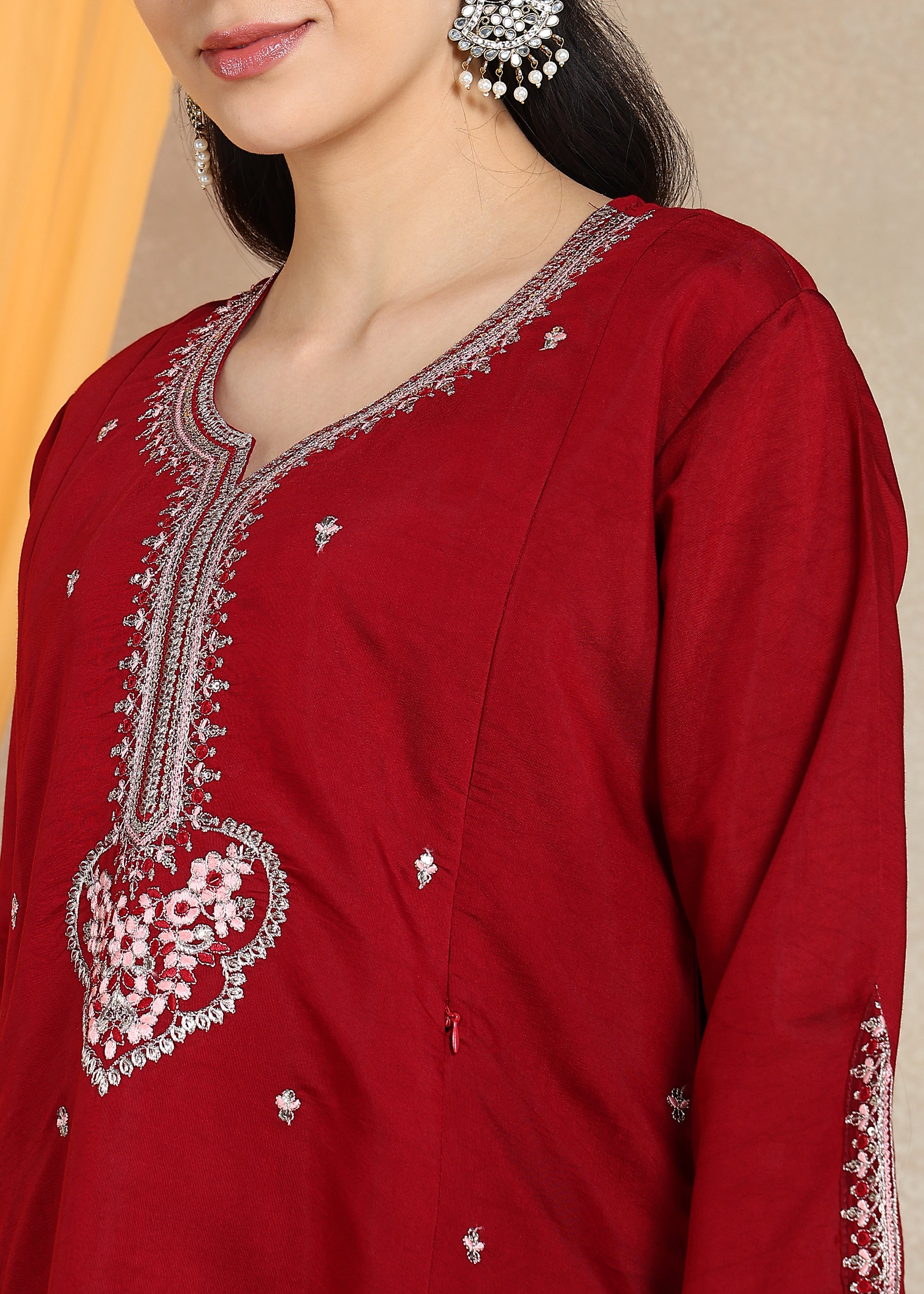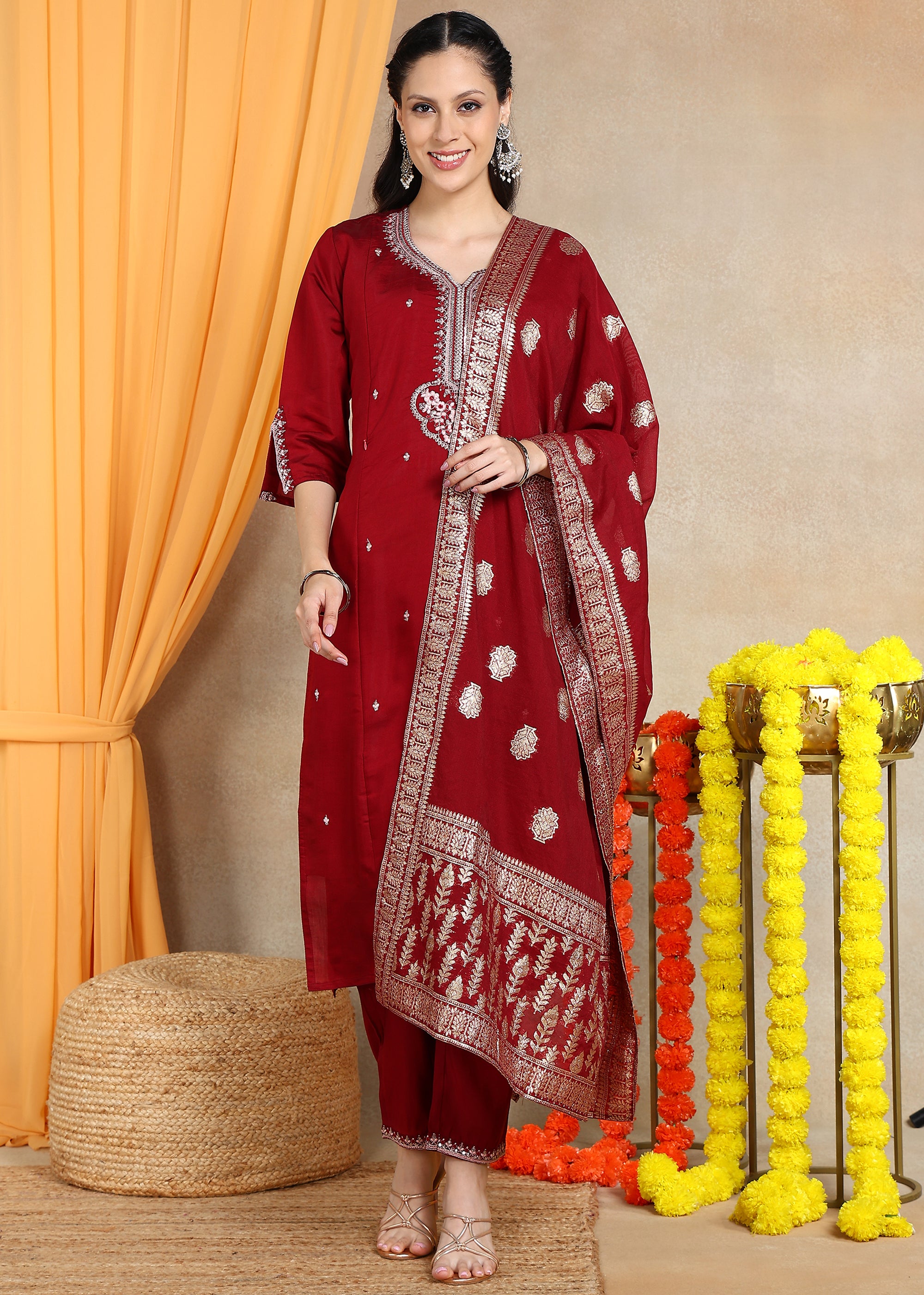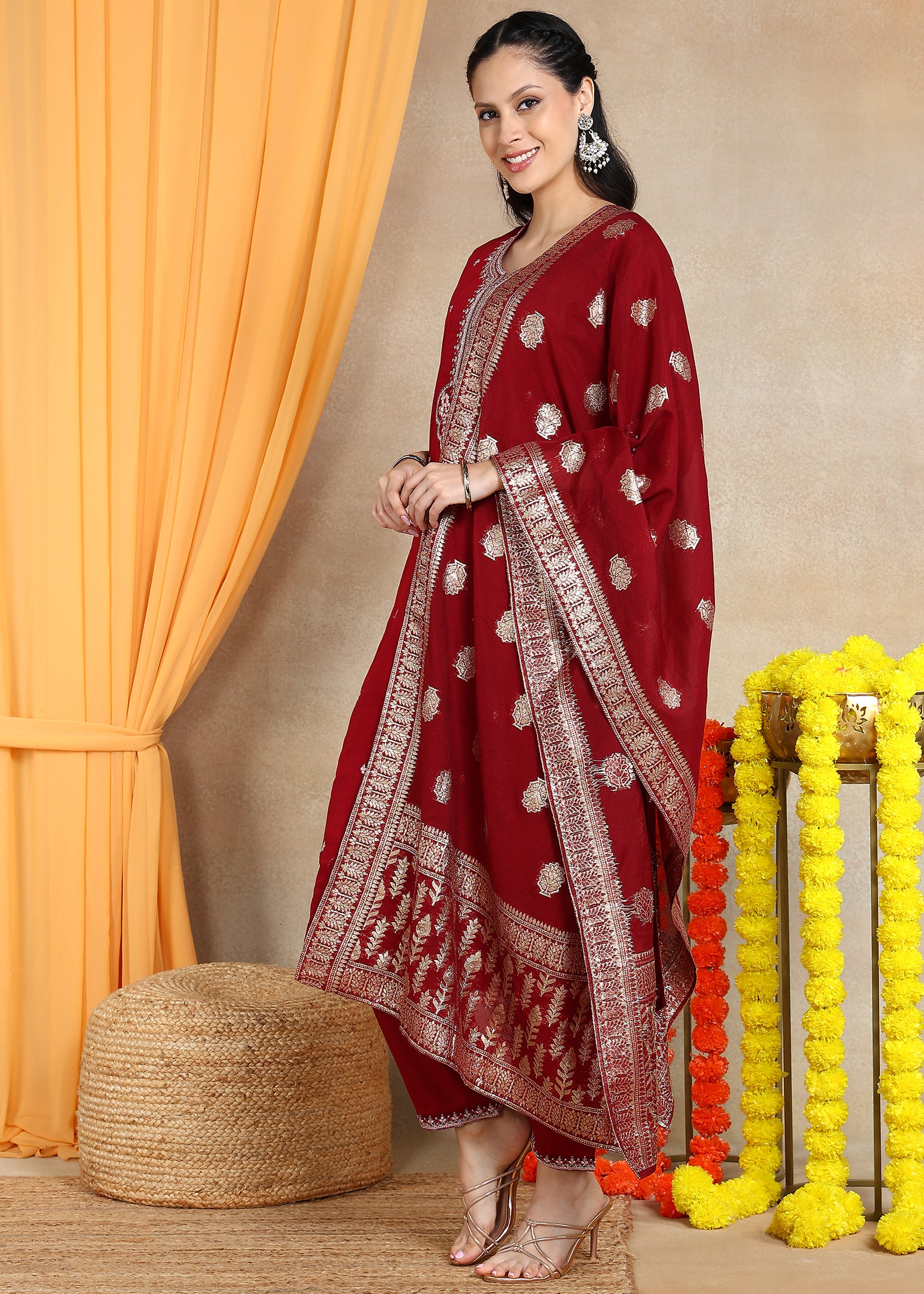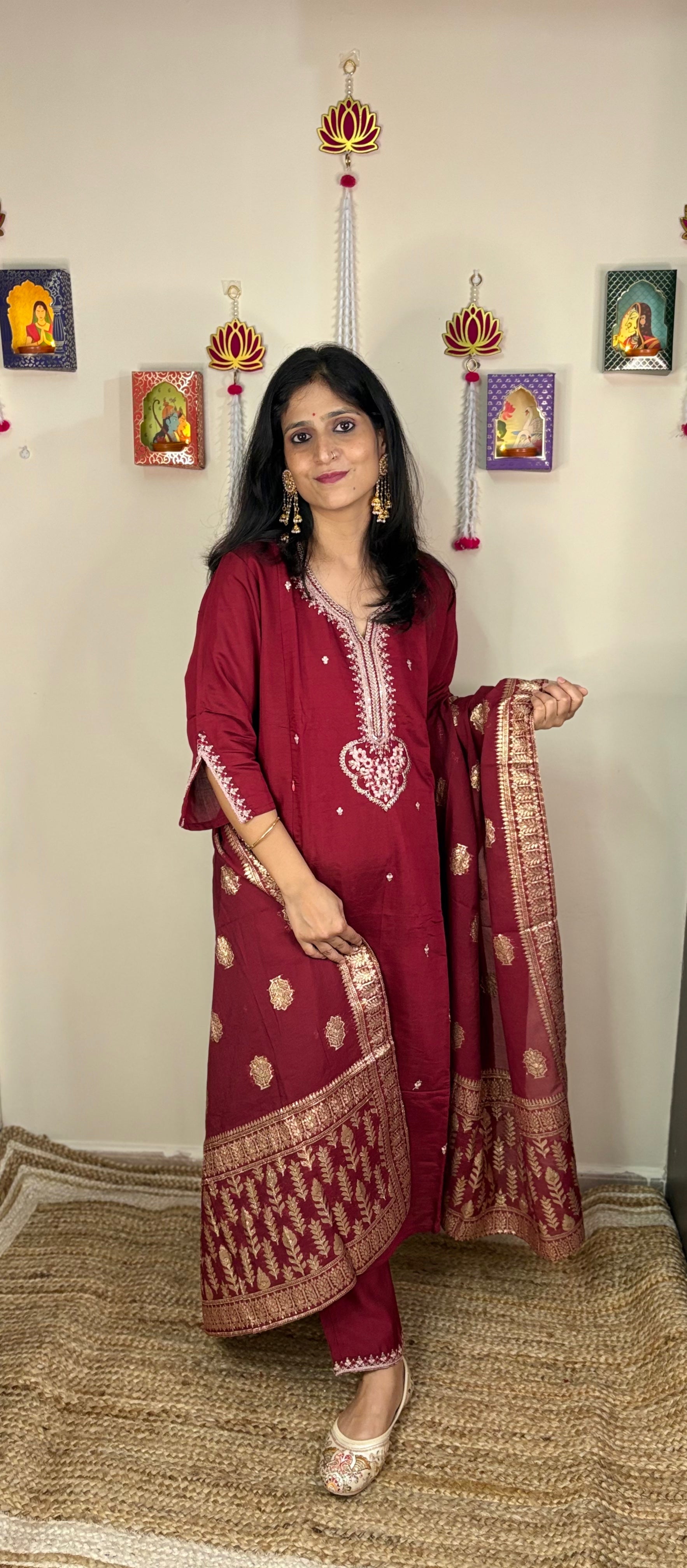 Marroon Festive Straight Feeding Kurta Set with Dupatta