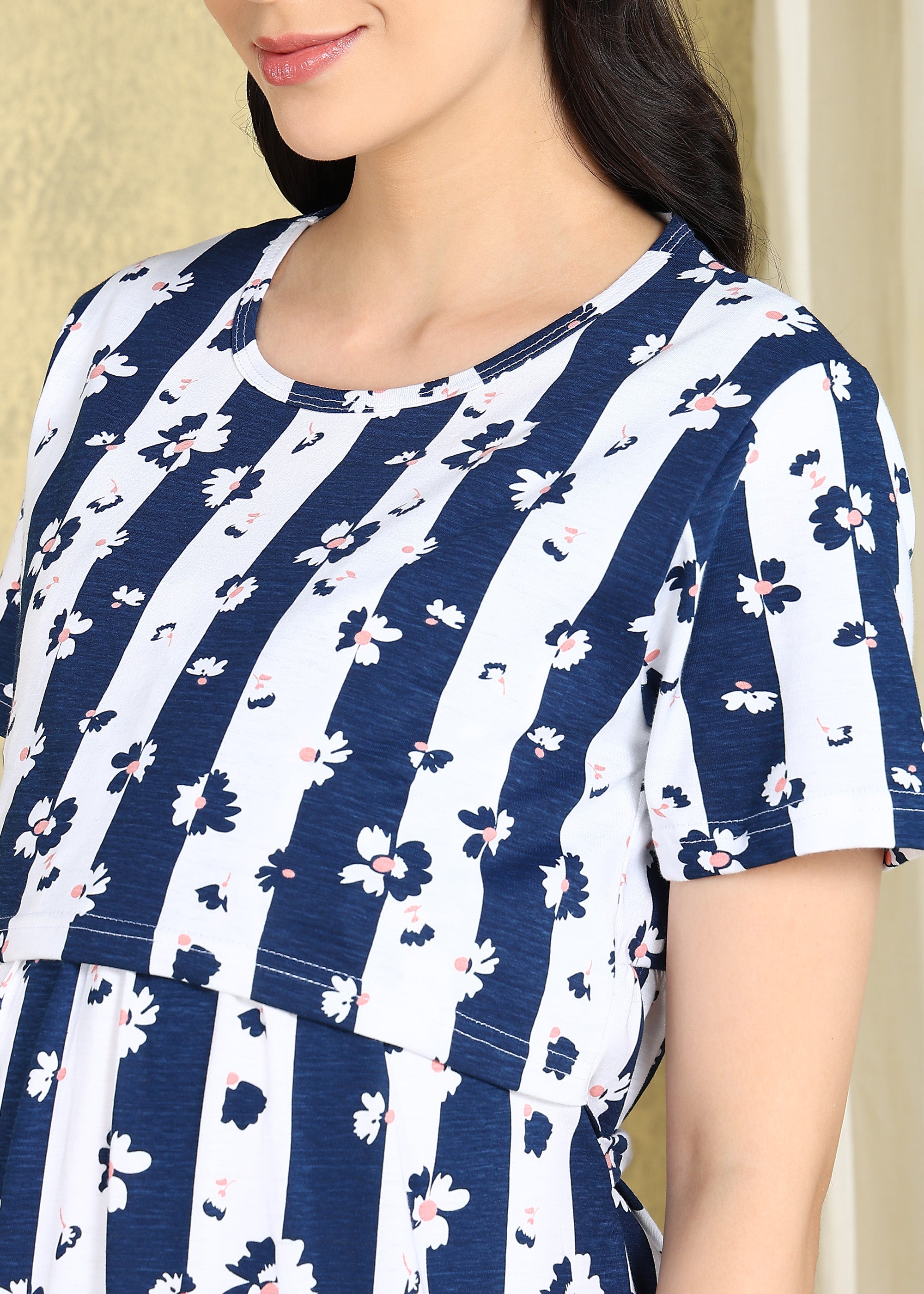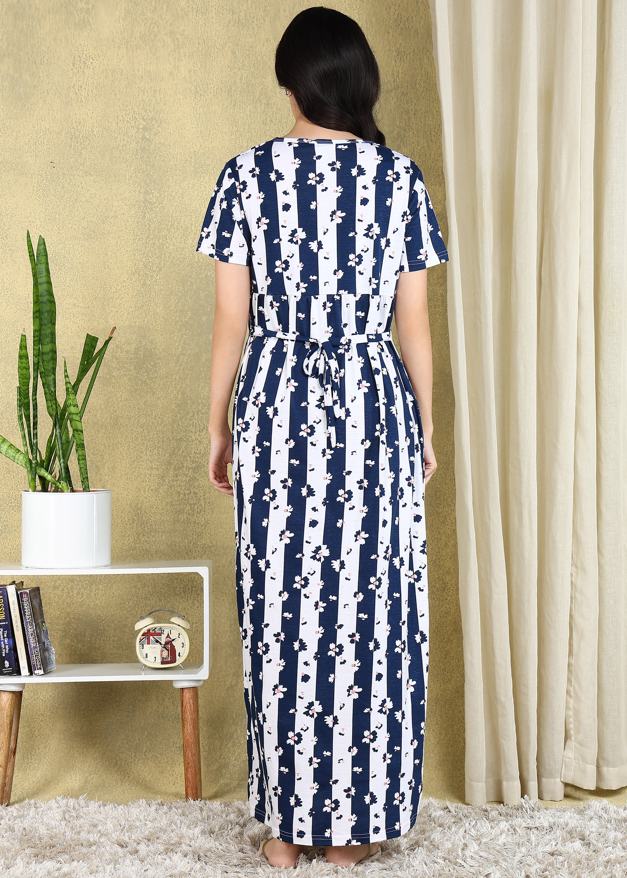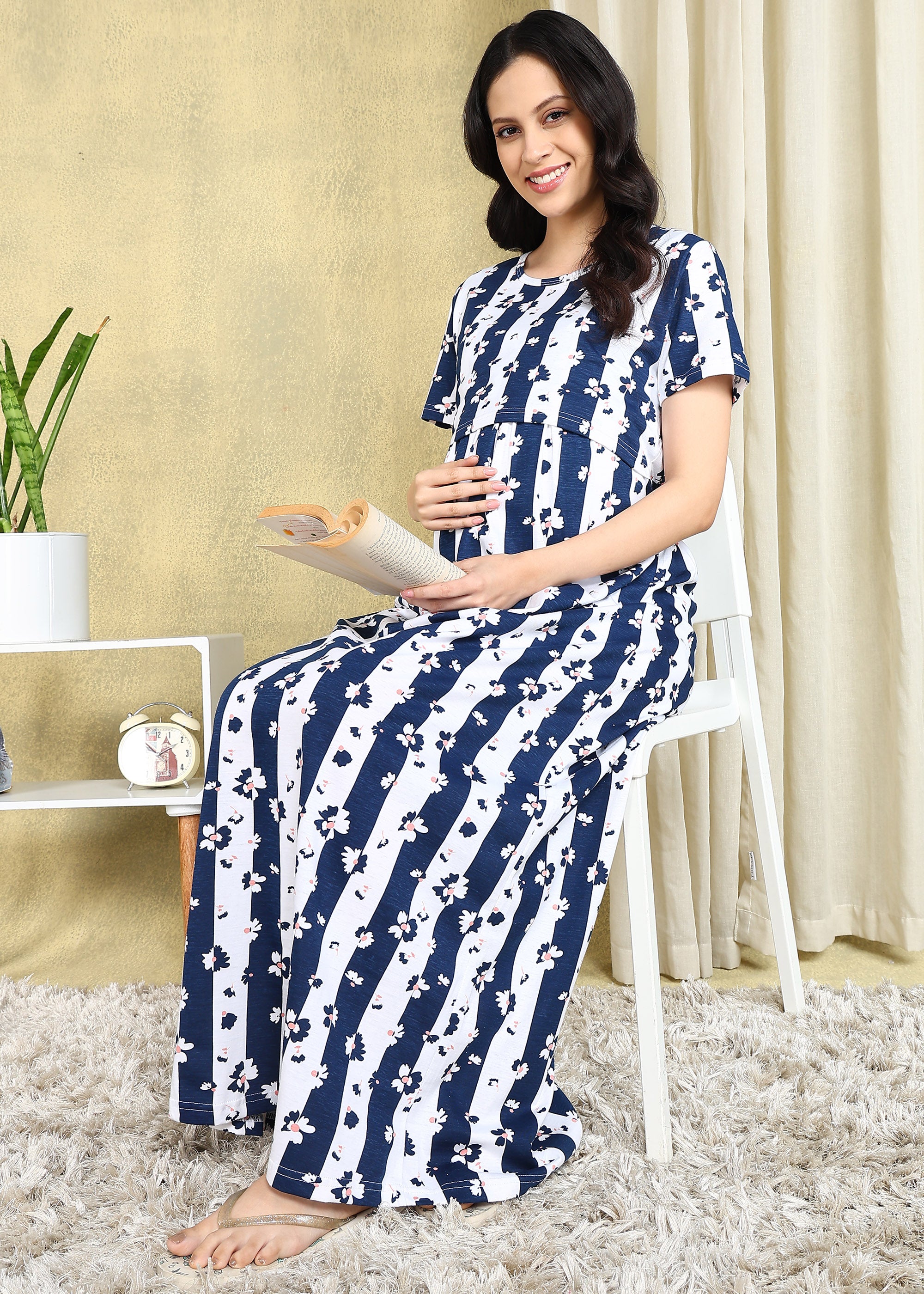 Striped Cross-neck Maternity Loungewear Maxi Dress
