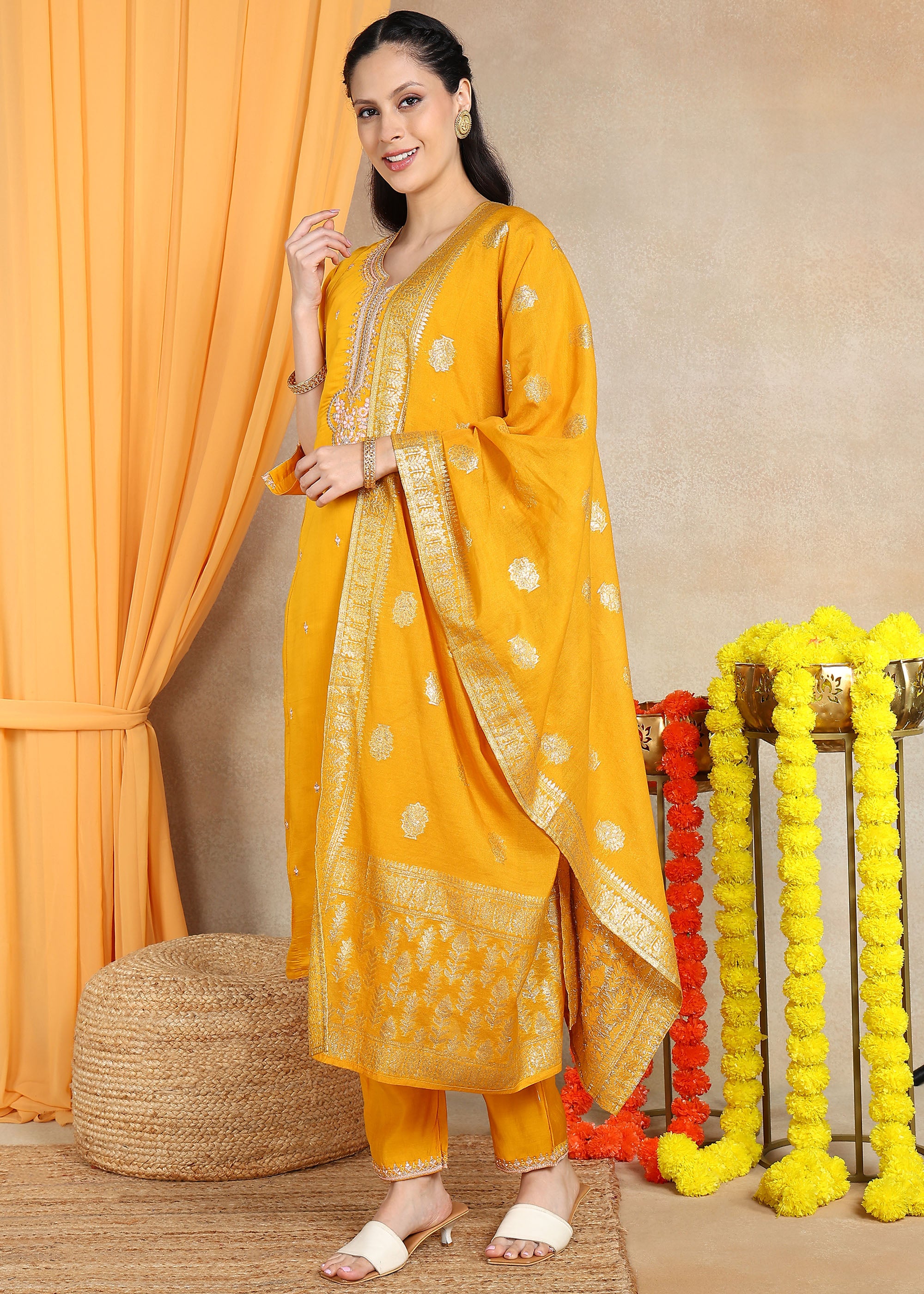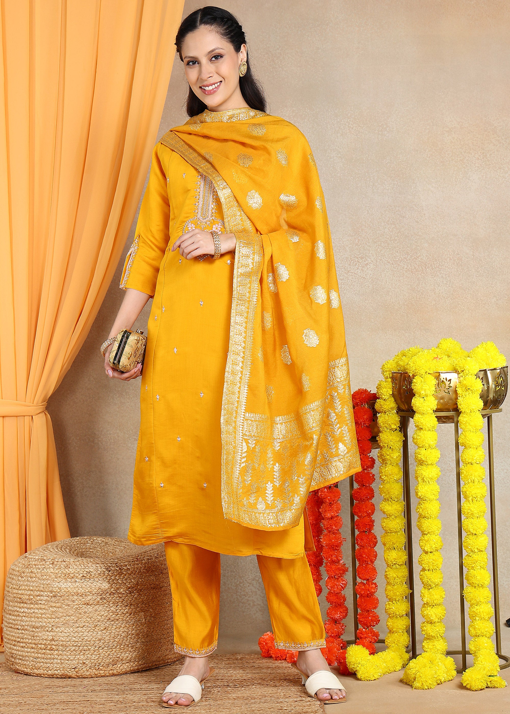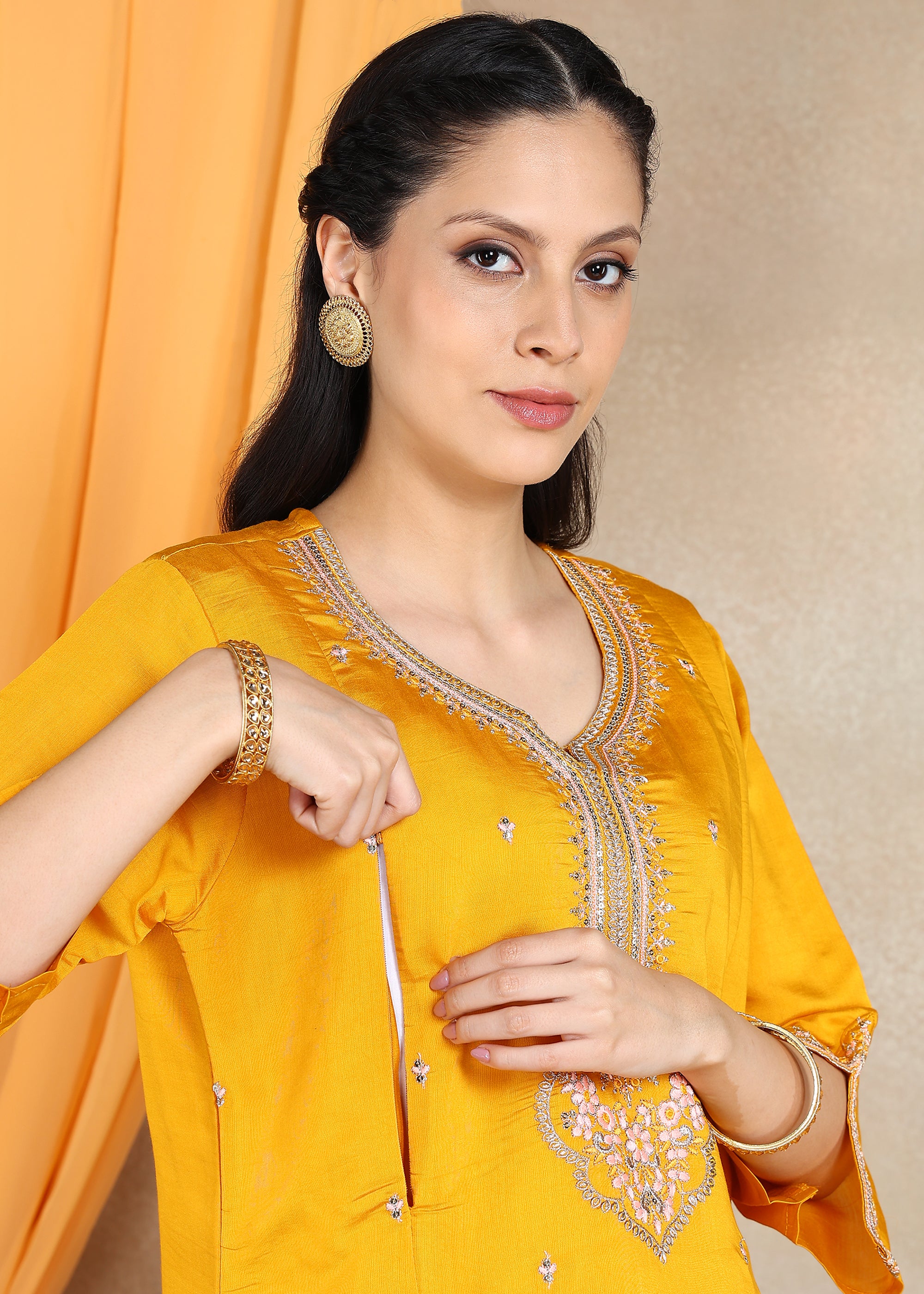 Yellow Festive Straight Feeding Kurta Set with Dupatta