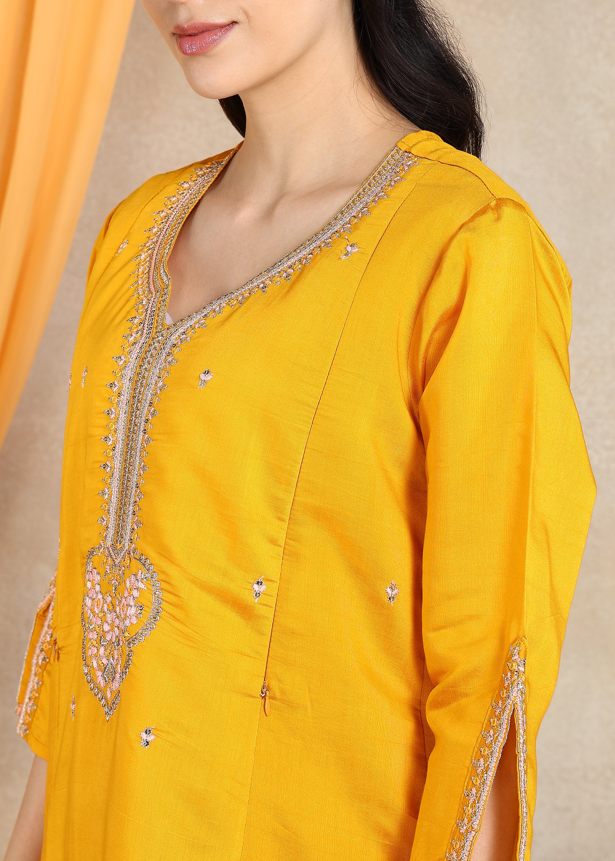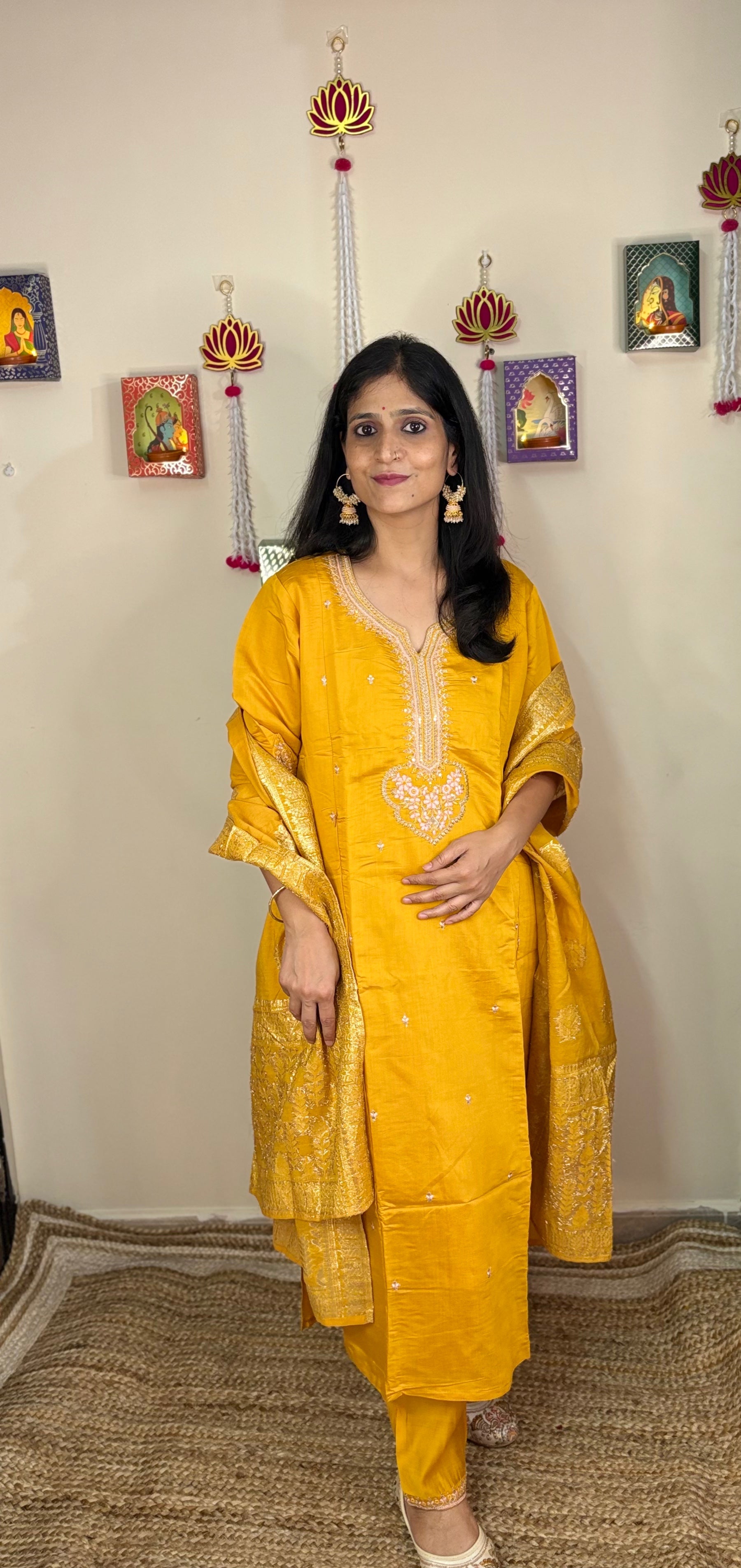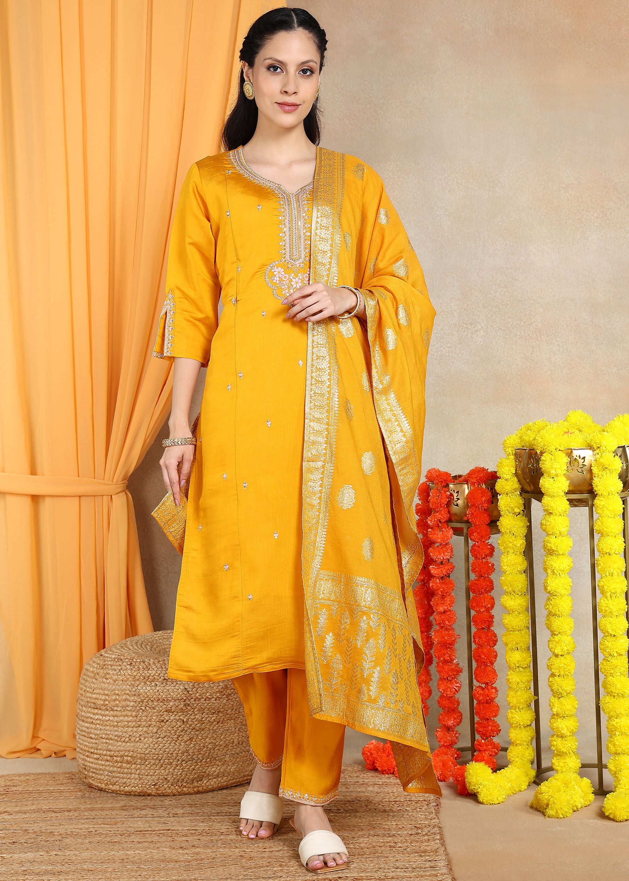 Yellow Festive Straight Feeding Kurta Set with Dupatta
